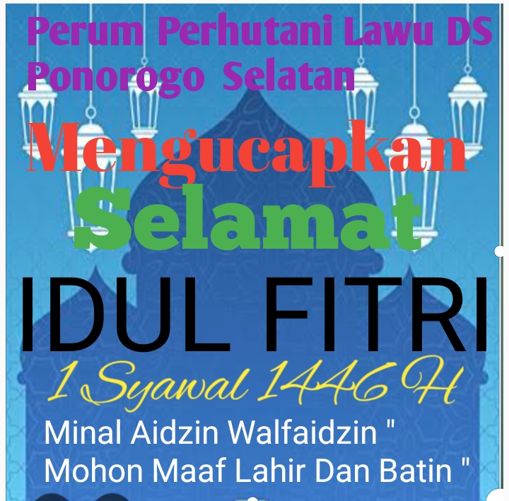 Perum Perhutani Lawu DS BKPH Ponorogo Selatan Asper Beserta Staf Dan Jajaranya Mengucapkan Selamat Hari Raya Idul Fitri 1 Syawal 1446 H , Minal Aidzin Walfaidzin ,” Mohon Maaf Lahir Dan Batin “