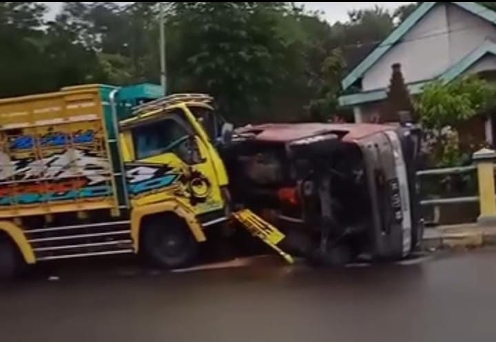 Akibat Sopir Truk Mengantuk Tabrak Bus Mini