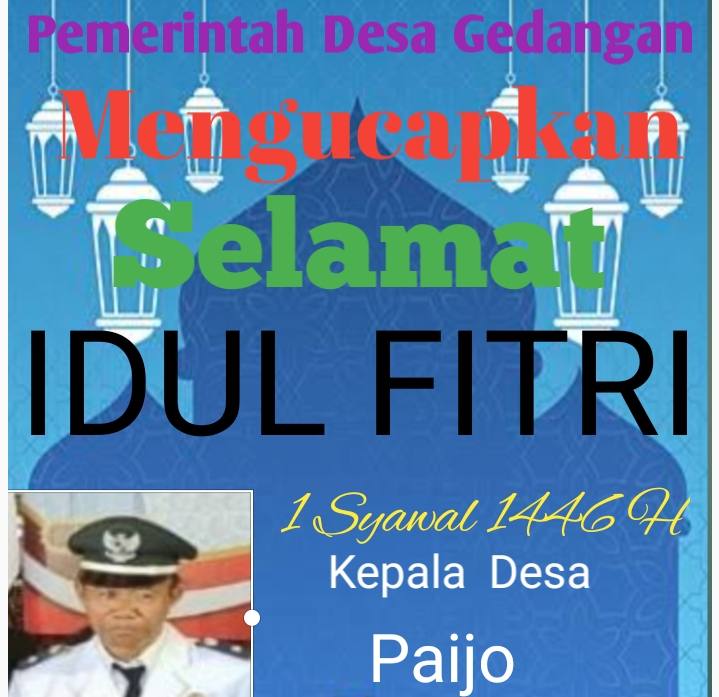 Seluruh Perangkat Dan Lembaga Desa Gedangan Kecamatan Ngrayun Kabupaten Ponorogo ,Provinsi Jawa Timur ,Mengucapkan Selamat Hari Raya Idul Fitri 1 Syawal1446 H