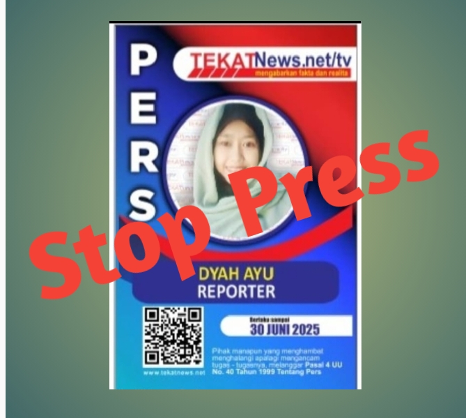 STOP PRES !!! Diberitahukan kepada instansi Polri dan TNI,birokrasi ,maupun masyarakat ,bahwa Orang yang bernama Dyah Ayu sudah tidak menjadi Reporter/ wartawati TKT tv Online mulai bulan Mei 2025 ,untuk itu segala tindakan yang mereka lakukan bukan menjadi tanggung jawab Redaksi Tekatnews net tv , demikian saya sampaikan terima kasih.